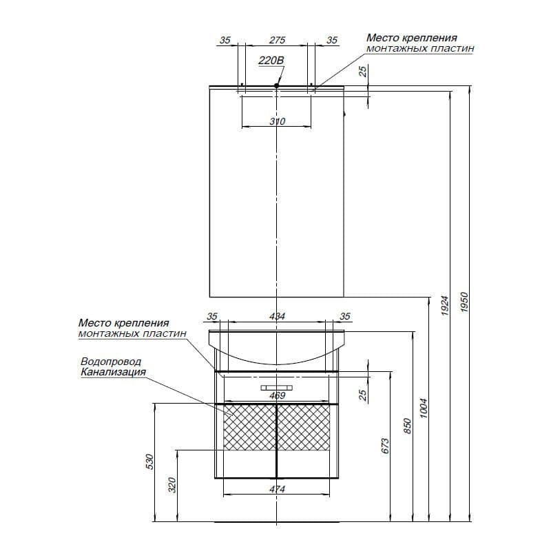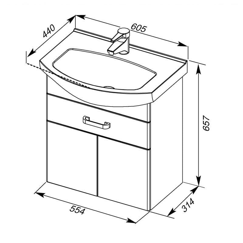 Тумба с раковиной Aquanet Ирис 60 белый (1 ящик, 2 дверцы)