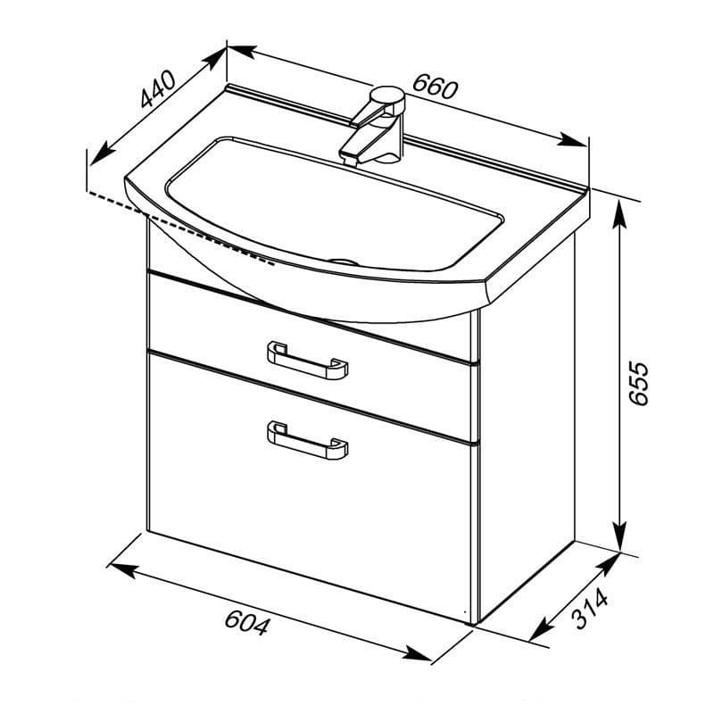 Тумба с раковиной Aquanet Ирис 65 белый (2 ящика)