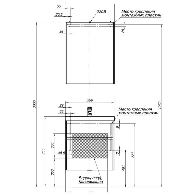 Тумба с раковиной Aquanet Латина 60 белый (2 ящика)