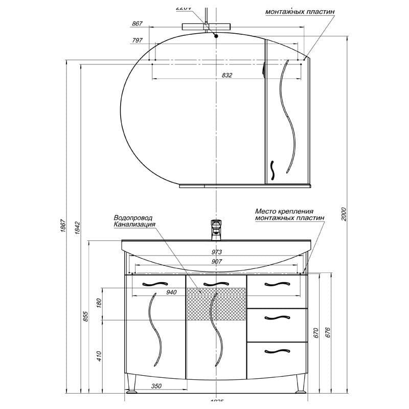 Тумба с раковиной Aquanet Моника 105 белый