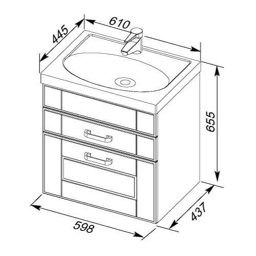 Тумба с раковиной Aquanet Рондо 60 белый (2 ящика)