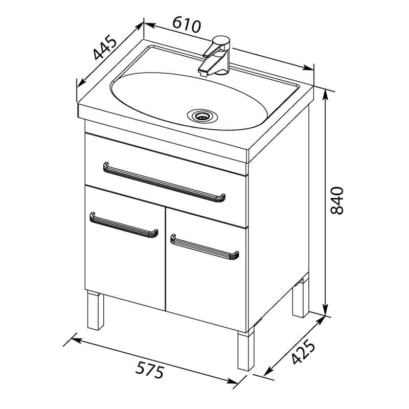 Тумба с раковиной Aquanet Сиена 60 белый (напольный 1 ящик 2 дверцы)