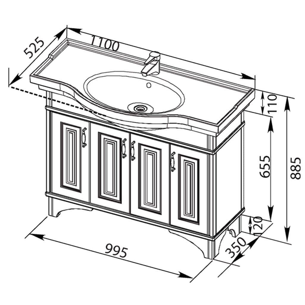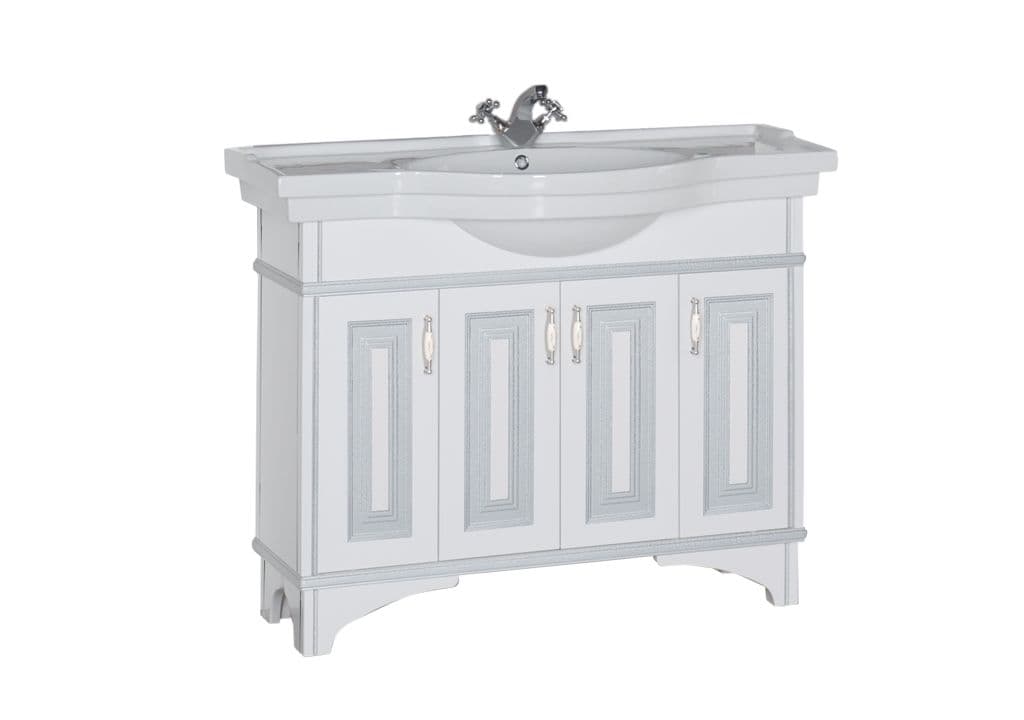 Тумба с раковиной Aquanet Валенса 110 белый краколет/серебро