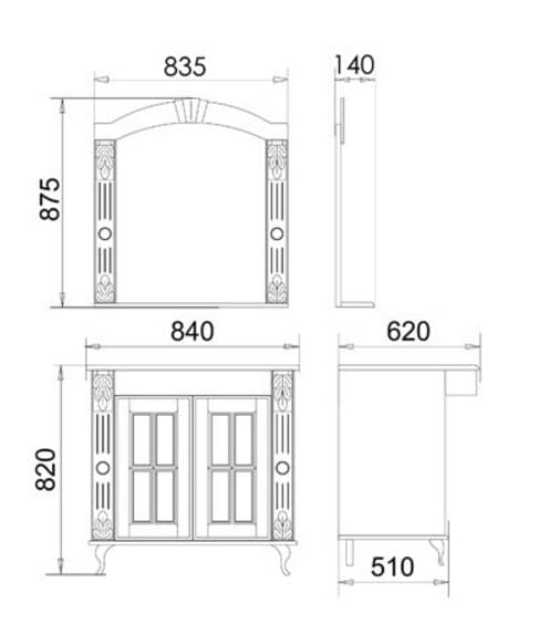 Мебель для ванны Атолл Александрия 85К дорато патина золото с радиусным фасадом