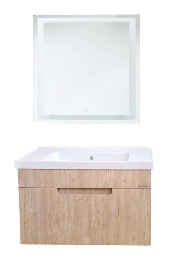 Bellezza Грейс-90 Тумба подвесная, с 1 ящиком, Дуб светлый (ПВХ), с умывальником Грейс 90 (Дрея)