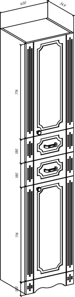 Bellezza Кантри-40 Пенал со стеклом с 2-мя ящиками Белый (патина), Серебро, левый-правый