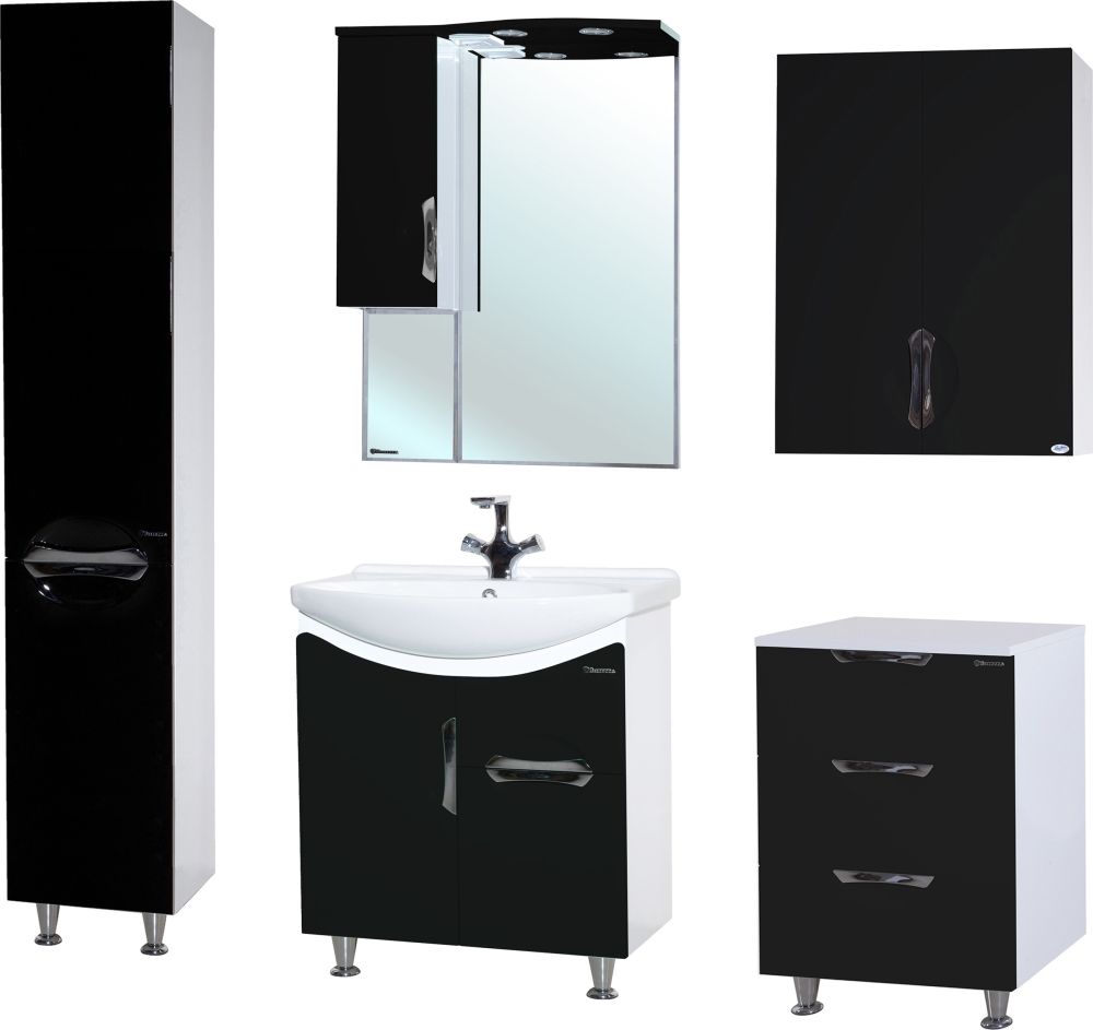 Bellezza Лагуна-65 Тумба с ящиком, Черная + Раковина Dreja (Чехия)