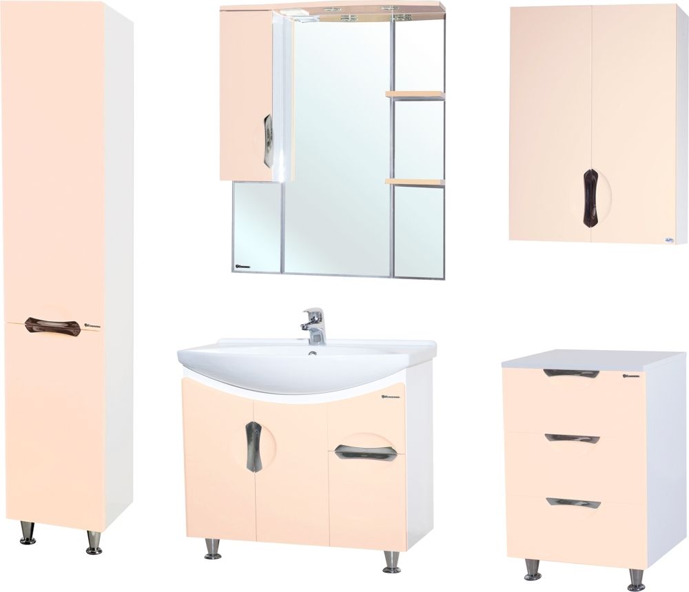 Bellezza Лагуна-75 Зеркало-шкаф Бежевый, встроенный светильник, левый