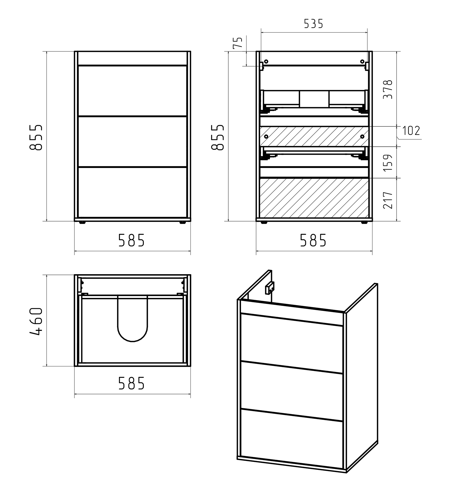 Brevita Grafit Тумба под раковину 60 с 3 ящ, под стиральную машину GRA-01060-013Я