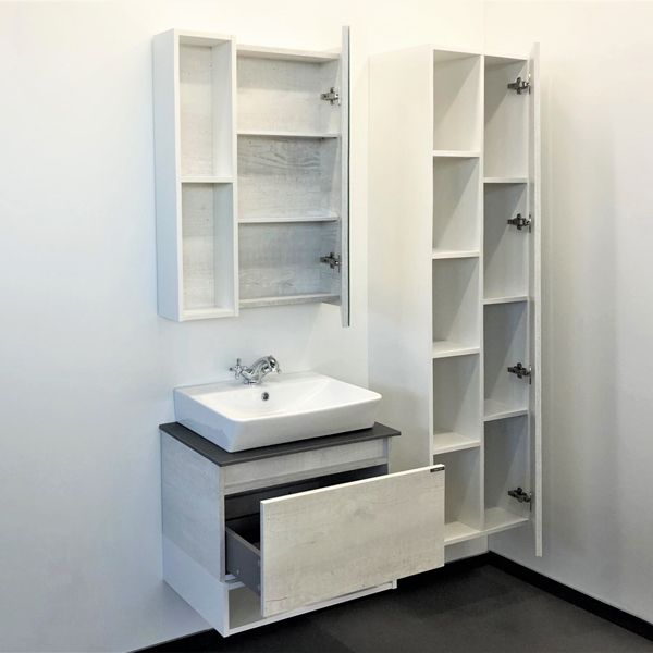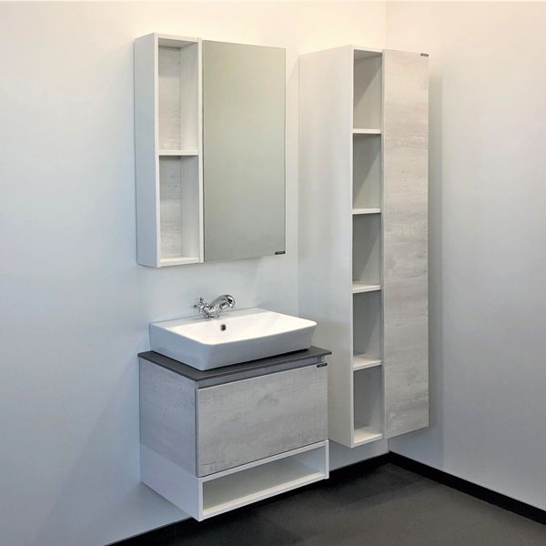 Comforty Прага 00-00011848 Тумба-умывальник 60 дуб белый с серой столешницей с раковиной 9055RA-50