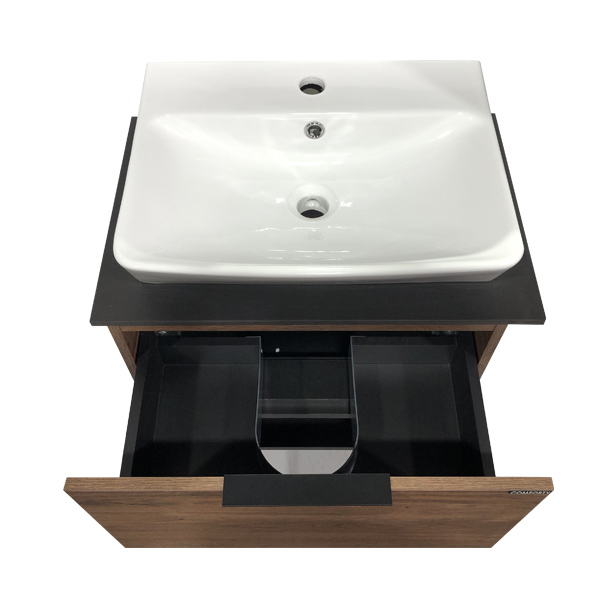 Comforty Штутгарт Тумба-умывальник 60, дуб темно-коричневый с черной столешницей №8 c раковиной 9055RA-50