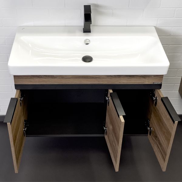 Comforty Соло 00-00010979 Тумба-умывальник 90 дуб тёмно-коричневый с раковиной Адриана 90