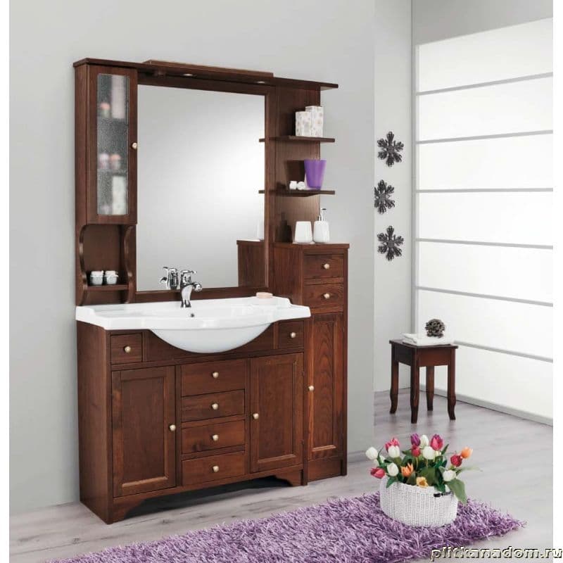 Eban Eleonora Modular FCPLS107SN Зеркало в раме со шкафчиком cлева-SX и полочками справа 107х104, без ручек, noce