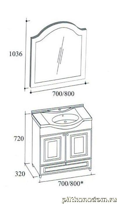 ЭкоМебель Royal Комплект мебели для ванных комнат Royal-2 Light2 (тумба с умывальником 70, зеркало в раме)