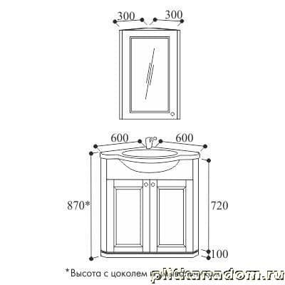 ЭкоМебель Соната Комплект мебели для ванных комнат Light1 (тумба с умывальником угловая 60х60,шкаф угловой с зеркалом)