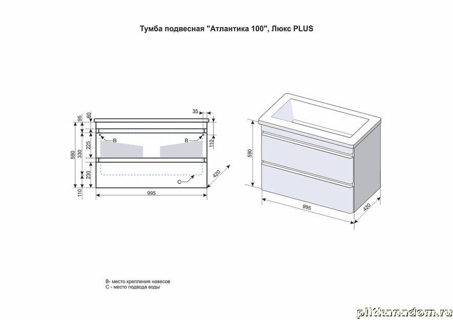 El Fante Атлантика Тумба подвесная 100, Люкс антискрейч, Plus