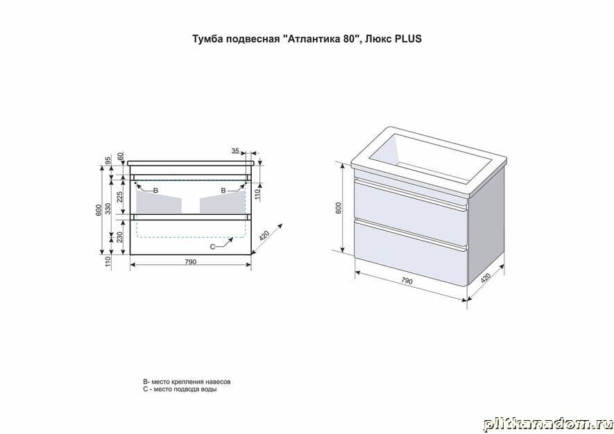 El Fante Атлантика Тумба подвесная 80, Люкс старое дерево, Plus