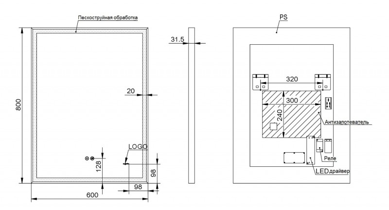 Esbano ES-3682HD Зеркало со встроенной подсветкой 60х80х5