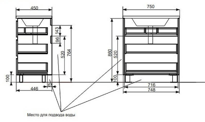 Эстет Bali ФР-00009965 Комплект мебели Bali New 750х450 напольный 3 ящика 748х446х860