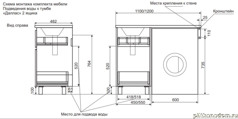 Эстет Dallas Luxe ФР-00001918 Тумба 120 напольная с раковиной, 2 ящика, левая