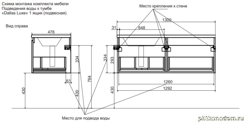 Эстет Dallas Luxe ФР-00002274 Тумба 130 подвесная с раковиной, левая