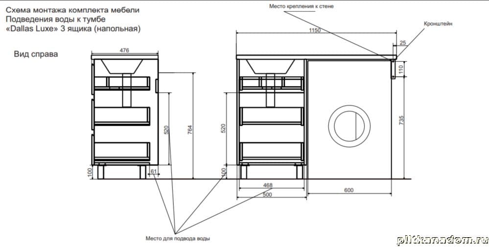 Эстет Dallas Luxe ФР-00002300 Тумба 115 напольная с раковиной, 3 ящика, левая