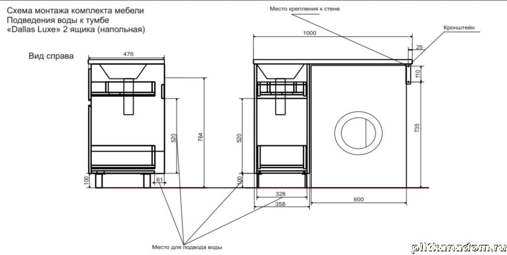 Эстет Dallas Luxe ФР-00002316 Тумба 100 напольная с раковиной, 2 ящика, правая