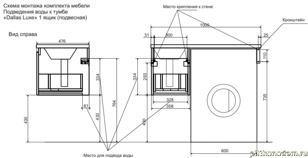 Эстет Dallas Luxe ФР-00002321 Тумба 100 подвесная с раковиной, левая