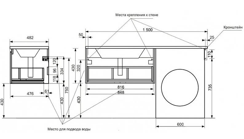 Эстет Dallas Luxe ФР-00009689 Комплект мебели Dallas Luxe 1500х482 левосторонний подвесной 1 ящик 848х476х430
