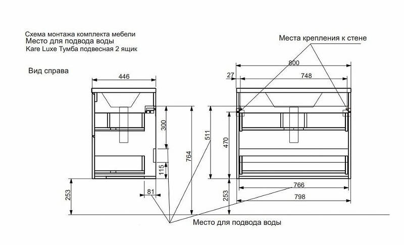 Эстет Kare Luxe ФР-00005715 Комплект мебели Kare Luxe 800х450 подвесной 2 ящика 798х446х607