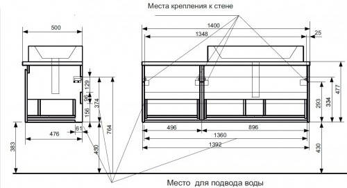 Эстет Malibu ФР-00007127 Комплект мебели подвесной 1400х500 правосторонний 2 ящика со вставкой массив 1392х476х477