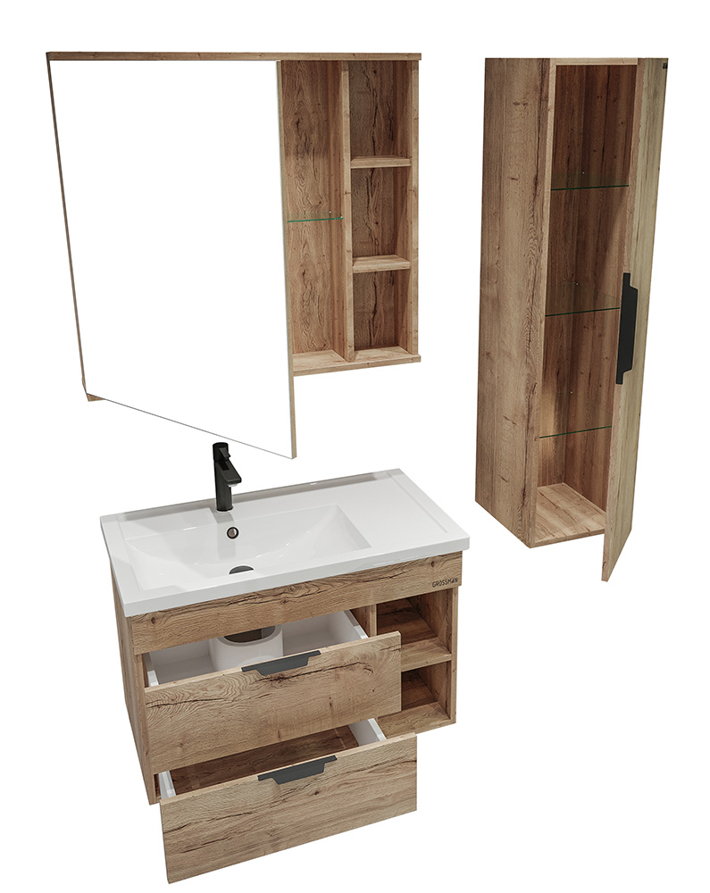 Grossman Форта Зеркальный шкаф 80 дуб галифакс
