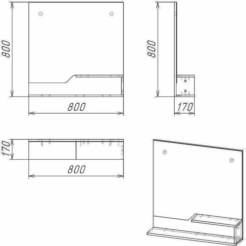Grossman Зеркало Grossman ЛАЙФ-80 см винтажное дерево темное-графит 800х170х800
