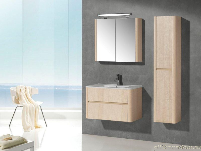IBX Asun, тумба под раковину 80 см, 2 ящика без ручек, натуральный