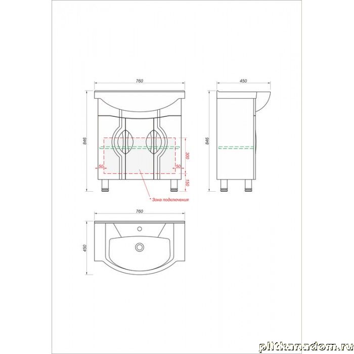 Какса-А Каприз-Н 4338 Тумба под умывальник Элеганс 750 Белая 75х85х43