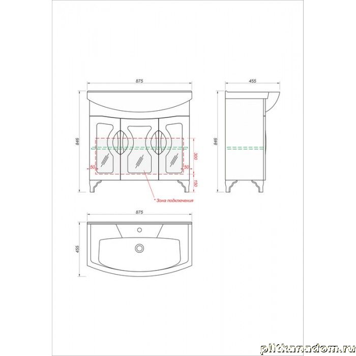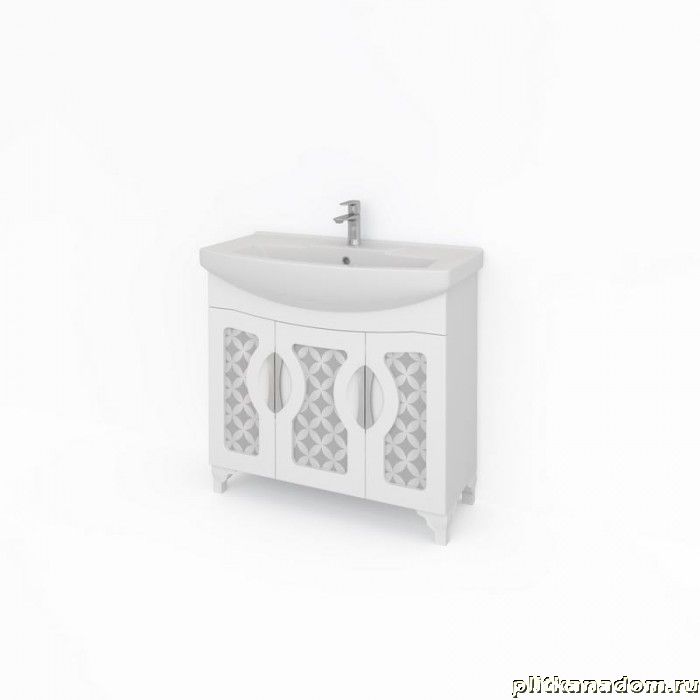 Какса-А Каприз Зеркальный 4300 Тумба под умывальник Элеганс 850, Белая 85х85х45