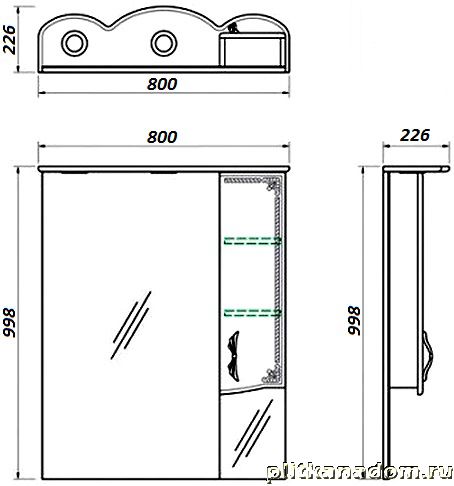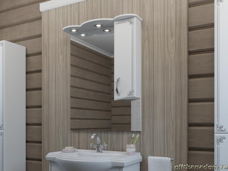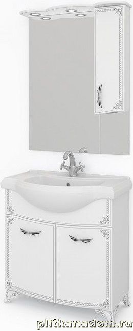 Какса-А Классик-Д 4077 Зеркало + Шкаф 80, с подсветкой, Белый с серебром, правое 80х100х22,6