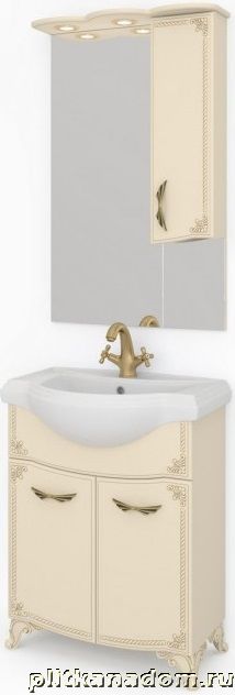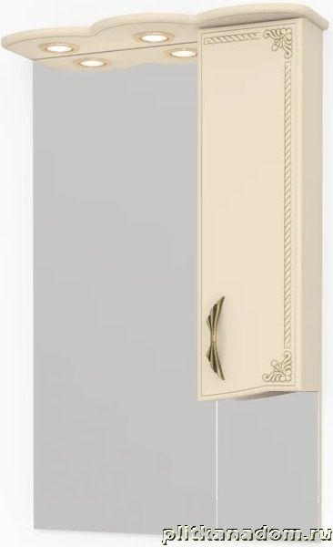 Какса-А Классик-Д 4233 Зеркало + Шкаф 65, с подсветкой, Бежевый с золотом, правое 65х100х22,6