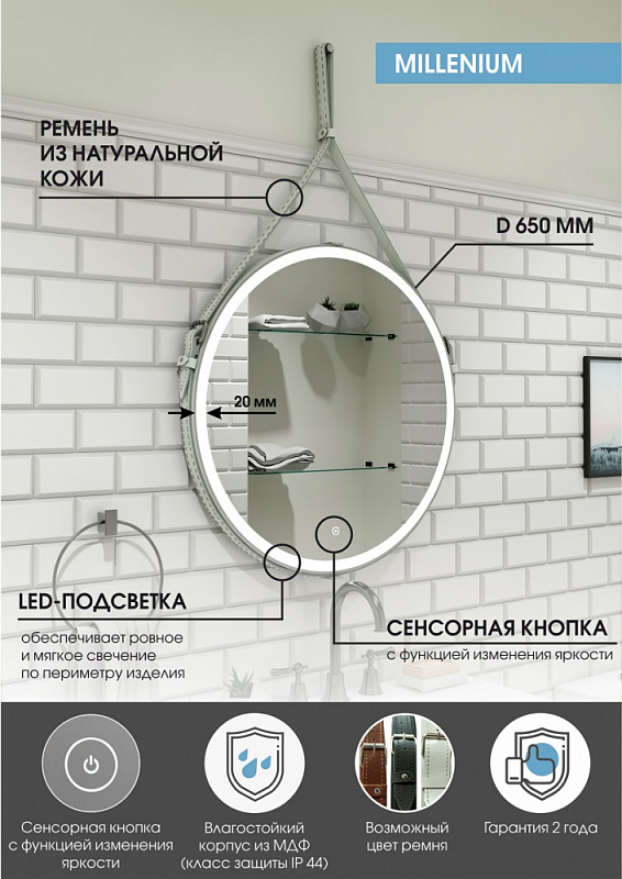 Зеркало Континент Millenium White D650 с подсветкой с сенсорным выключателем ЗЛП738