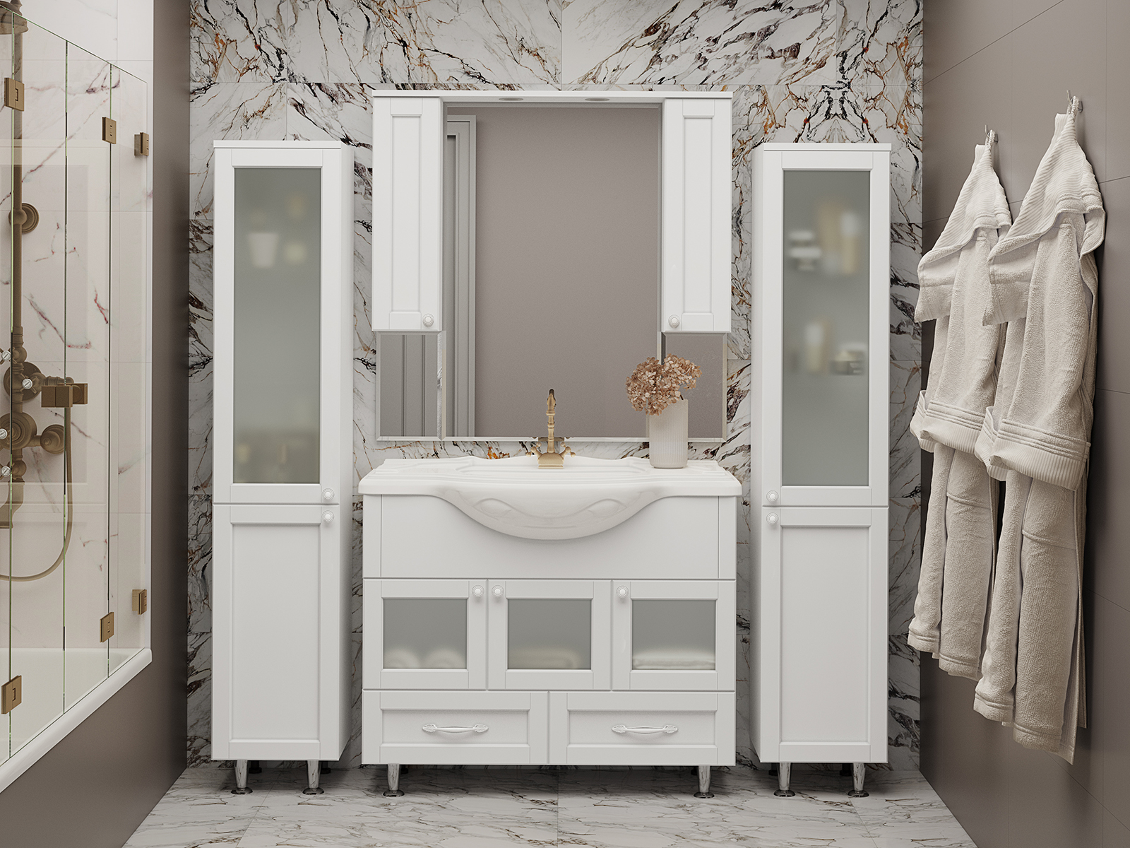 Misty Латте Шкаф - пенал 35 белый правый П-Лат05035-01П
