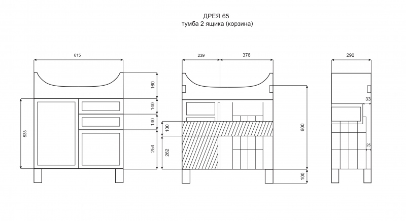 Тумба под раковину Misty Дрея - 65 Тумба с 2-мя ящ. (корзина) Э-Дре01065-01К2Я