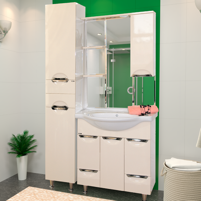 Зеркальный шкаф Misty Жасмин - 85 Зеркало - шкаф прав. (свет) БЕЖ. эмаль П-Жас02085-031СвП