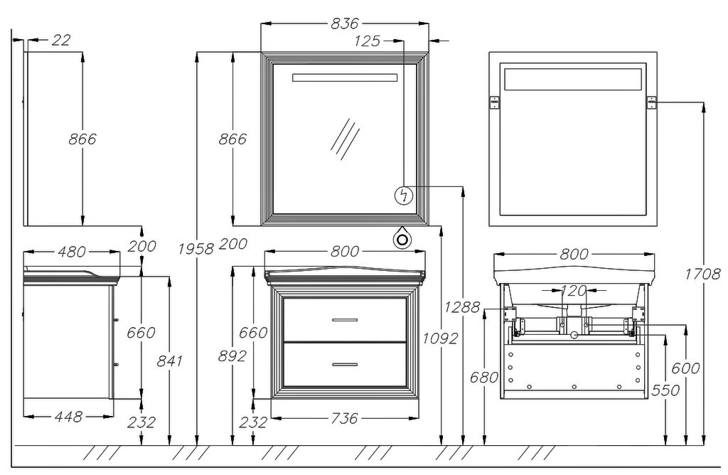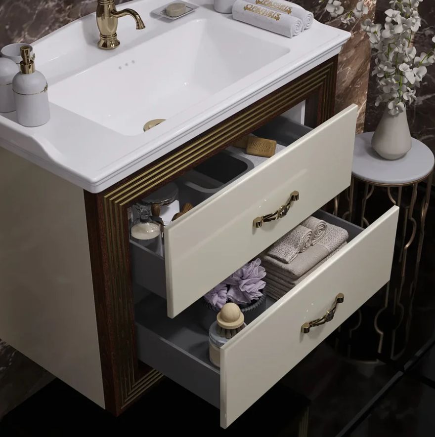 Opadiris Карат 00-00003520 Тумба 80, Бежевый Глянцевый, с золотой патиной 800x595x450