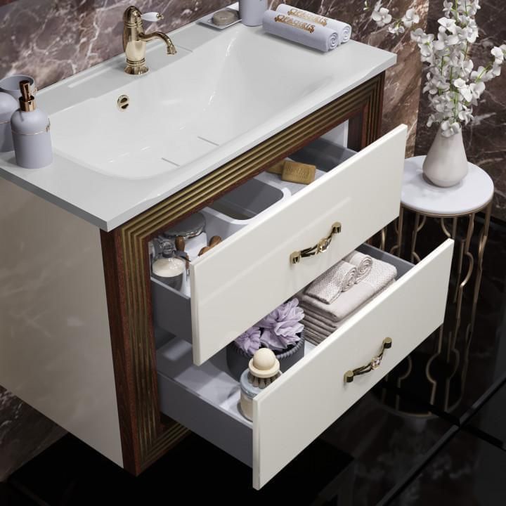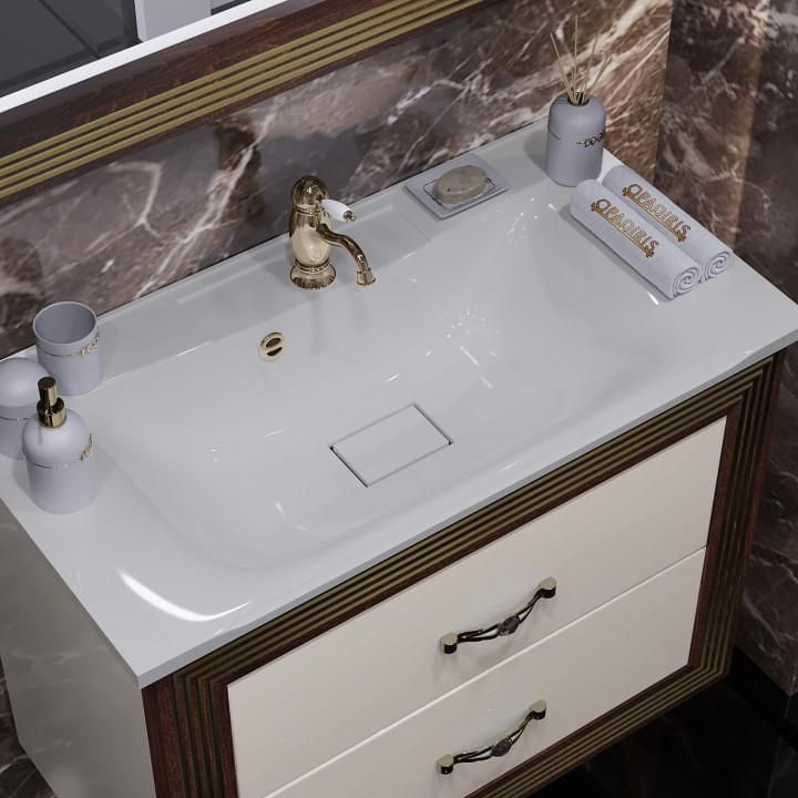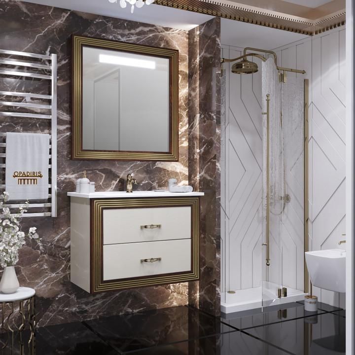 Opadiris Карат Комплект мебели 80, Бежевый Глянцевый, с золотой патиной (тумба, раковина, зеркало)