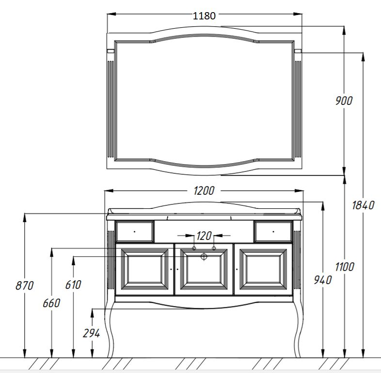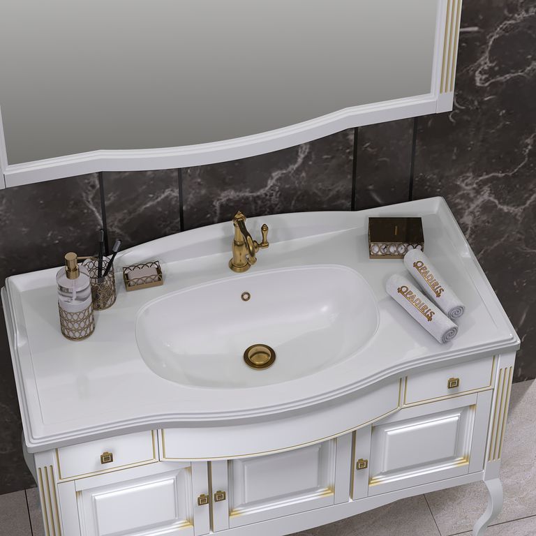 Opadiris Лаура Комплект мебели 120, Белый матовый с бежевой патиной-Swarovski Золото (тумба, раковина, зеркало)