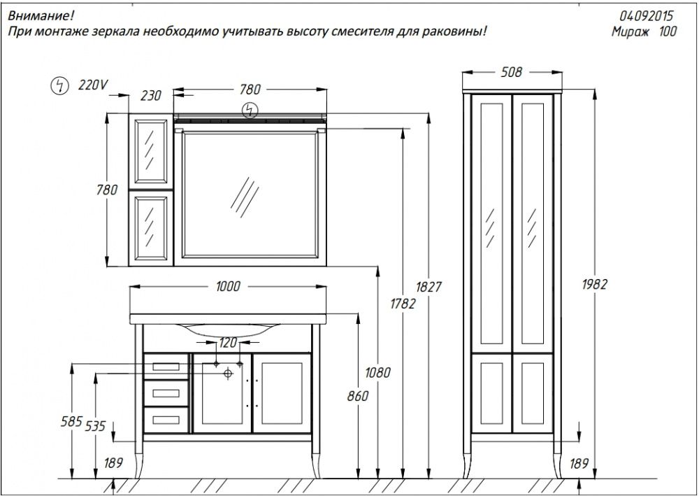 Opadiris Мираж 00-00000056 Тумба 100, Светлый орех (Р10) 1000x860x480