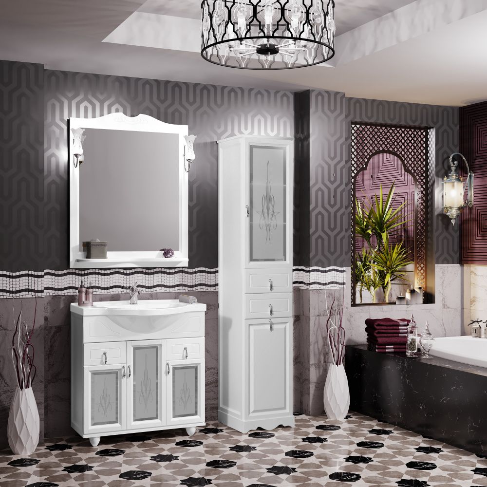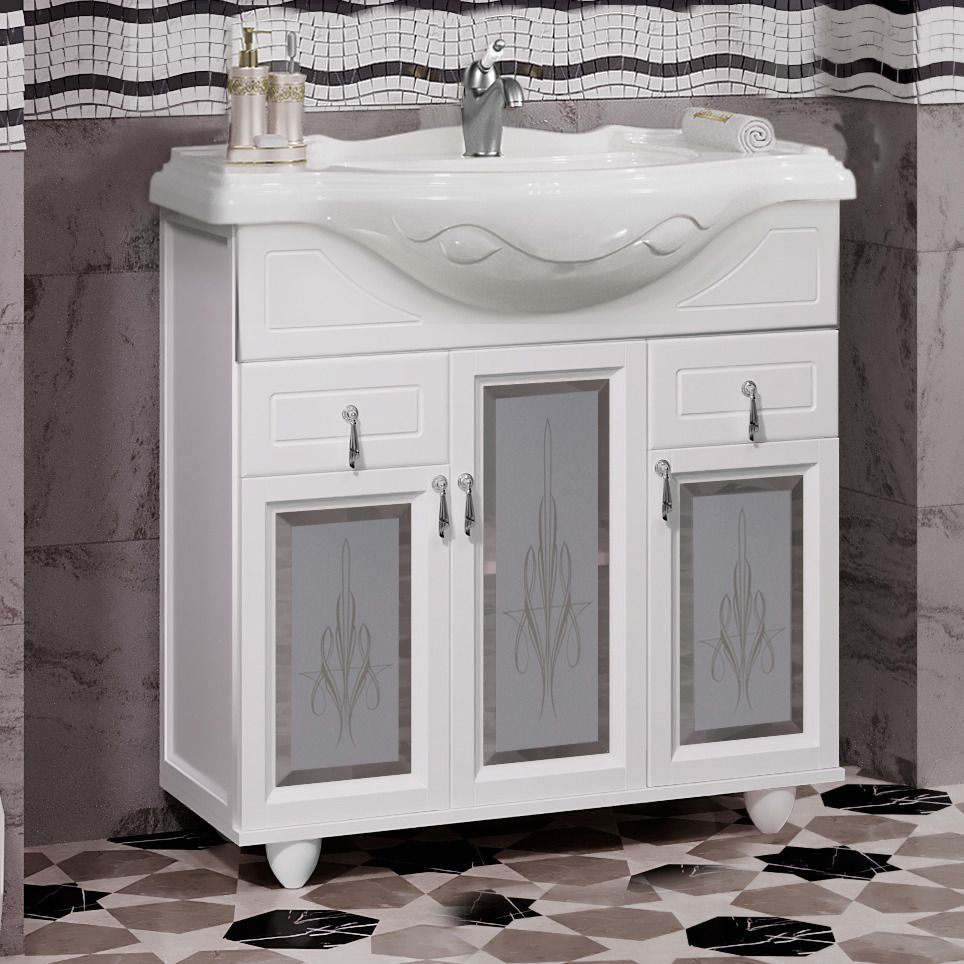 Opadiris Тибет 00-00002850 Тумба с художественным стеклом 85, Белый матовый (9003)