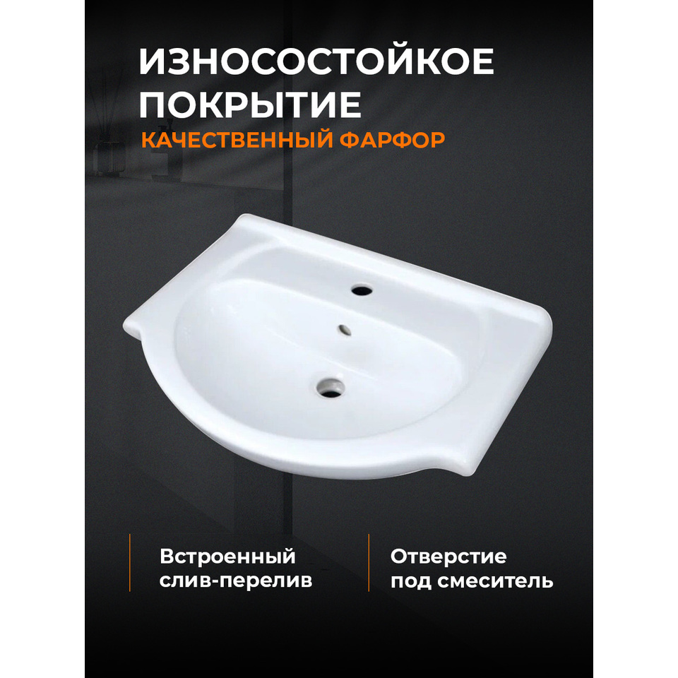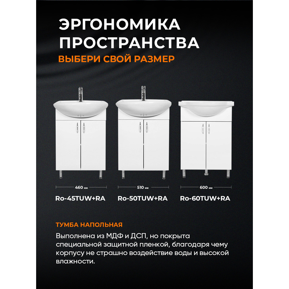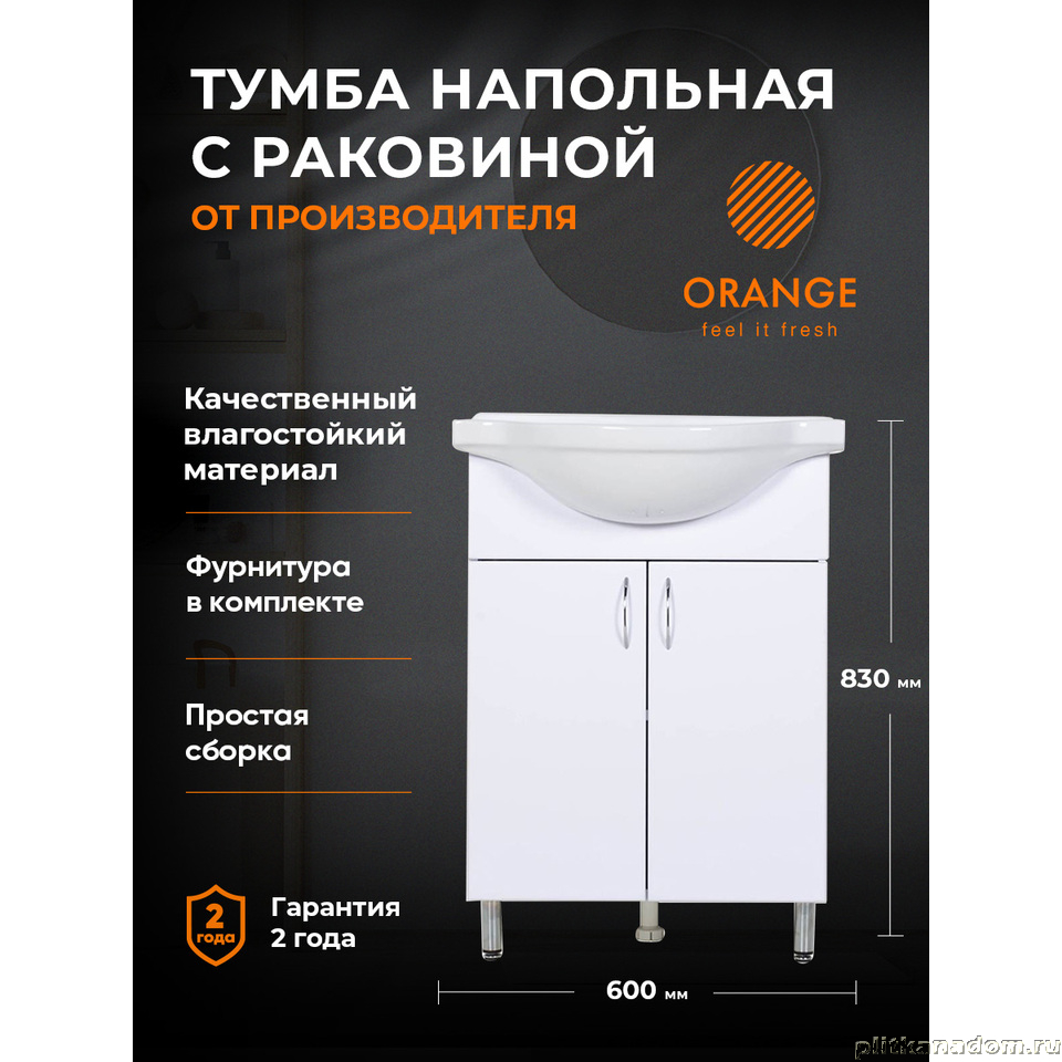 Тумба с раковиной Orange Роса Ro-60TUW+RA напольная, белый глянец