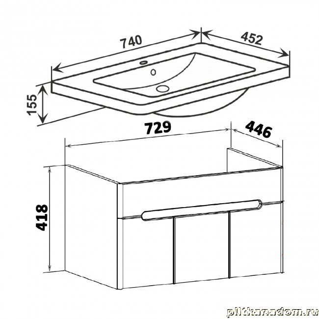 Runo Парма Тумба подвесная под раковину 75