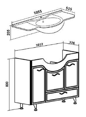 Runo Севилья Тумба с раковиной Дрея с корзиной для белья, 105